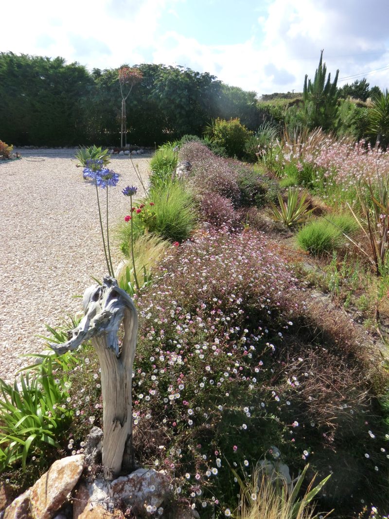 Bei der Gestaltung des Gartens soll die vorhandene native Vegetation in die Gartenplanung mit einbezogen werden, damit der Garten nicht wie ein Fremdkörper wirkt. Vorrangig wurden Planzen mit niedrigem Wasserbedarf ausgewählt, um die laufenden Kosten für die Bewässerung gering zu halten.